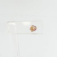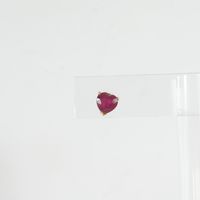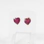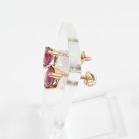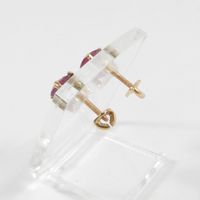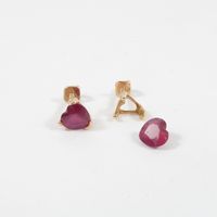 Paire de puces d'oreille : en or jaune 585 mil., en forme de cœur serties de pierres rouges d'imitation. (Pierre à re sertir) Poids brut : 1,3g