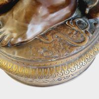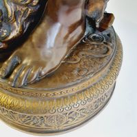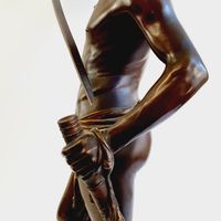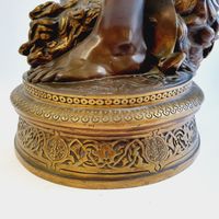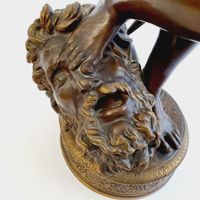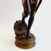 Antonin MERCIE (1845-1916) "David vainqueur de Goliath" Epreuve en bronze à double patine, brune et médaille. Signée sur la terrasse, marque de fondeur « F. Barbedienne Fondeur Paris » et cachet « Réduction mécanique A. Collas » Hauteur : 91 cm. Modèle exécuté à Rome en 1869-70; édition de Barbedienne à partir de 1875.