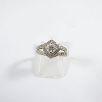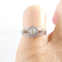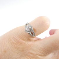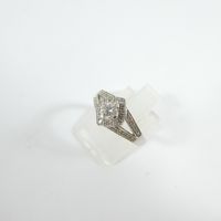 MAUBOUSSIN, "Love my love" : Bague solitaire en or gris 750 mil., à chaton losangique centrée d'un diamant taille brillant (0,15carats environ) (TDD : 51) . Poids brut : 2,7g