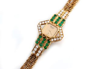 MONTRE BRACELET d'homme en or, cadran doré bicolore avec index bâtons appliqués, affichage de la date par guichet à 3 heures. Mouvement quartz rapporté. Bracelet or rapporté, maillons tressés avec fermoir à cliquet en or. Vers 1970.Poids brut: 117.9 g.