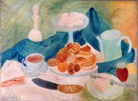 ANDRE LANSKOY (1902-1976) "Nature morte sur une table". Huile sur toile ,  signée en bas à gauche. Dim. : 60 x 80 cm. (Salissures, petits manques).