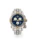 BREITLING, FrequencyMontre d’homme ronde (diamètre: 45mm) en acier. Lunette tournante, 4 plots dorés. Fond à vis. Cadran bleu 3 compteurs. Mouvement quartz,faisant chronographe, trotteuse centrale, datographe guichet entre 4h et 5h. Bracelet acier boucle dépliante d’origine.