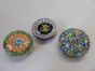 Trois presse-papiers en cristal à décor millefiori et femme parmi les fleurs.Diamètres : 7,5, 8 et 8,5 cm.(Petits éclats, rayures)