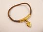 HERMESBracelet en cuir brun, le fermoir cylindrique en métal doré, retenant un petit cadenas en forme de cœur.Signé.