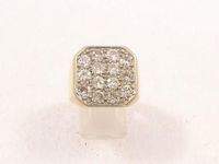 Bague chevalière en or 750 mil et platine 850 mil à plateau serti de diamants TA (TDD : 58). 26,3 g.