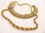 Collier à maillons corde torsadé en chute en or 750 mil, bracelet en or 750 mil à maillons tressés. (Chocs, déformations) (longueur : 21 cms). 43,2 g.
