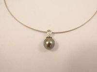 Collier en or gris 750mil composé d'une chaîne câble retenant un pendentif orné d'une perle de culture grise de 10mm environ, rehaussée d'un diamant taille poire en serti clos (6,5g) . on y joint un collier d'un rang de perles de culture en chute, fermoir en or 750mil. Poids total brut : 26,8g