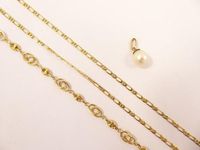 Lot en or 750 mil. : collier, bracelet, pendentif (perle de culture). 9,9 g.