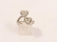 Bague à motif de fleurs diamantées en or gris 750 mil (Tdd : 52). (1 pierre accidentée). 6,4 g.