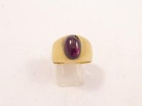 Bague en or 750 mil ornée d'un cabochon de pierre fine accidentée (Tdd : 61). 14,3 g brut.