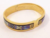 Bracelet rigide ouvrant émaillé en métal doré sign