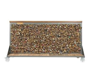 Grille de cadenas du Pont des Arts.Sur chariot en tubes d 'acier, main courante en chêne teinté vernis mat et plancher en chêne brut.Numéroté 2/15 .Dim (chariot compris) Long : 2,26 mètres - larg : 0,7 mètre - Haut : 1,2 mètre.Poids : 470 kg.