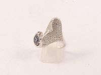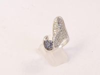 Bague en or gris 750 mil figurant une fleur, la feuille rehaussée de diamants, la fleur de saphirs (TDD : 55). 9,7 g.