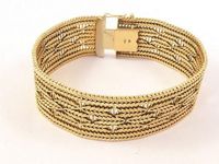 Bracelet manchette souple en or tressé 750 mil à décor de chevrons. (Longueur : 19,5 cm). 66,6 g.
