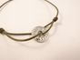 Bracelet sur cordon de coton kaki retenant un motif circulaire DE BEERS "Forget Me Not" en or gris 750 mil, ponctué d'un diamant brillanté. Signé et numéroté. 3,6 g. brut