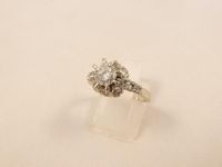 Bague en or gris 750 mil centrée d'un diamant rond