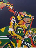 Trois affiches et lithographie : - Affiche "Mathieu Matégot, Tapisserie, du 7 au 23 avril 1961" (Entoilée). Dim. : 49 x 28 cm. - Affiche "POPANALIA" (Joan Baez, Pink Floyd, Eric Clapton), Imprimerie AUSSEL, Gennevilliers. Dim. : 56,5 x 38 cm (Déchirures) - Ecole du XXème siècle "Visage destructuré" Lithographie, signée en bas à droite et numérotée 19/90. Dim. : 67 x 51 cm.(non encadrés)