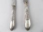 Emile ZIEGLER (actif 1892 et 1898-1905) : suite de 10 grands couteaux, 6 petits couteaux et un service à découper 2 pièces à manches rocaille en argent fourré 950 millièmes, les lames en acier. Décor de volutes et rinceaux feuillagés, fleurs et vagues déchiquetées. Chiffrés AF en lettres anglaises. Poids brut : 1198,2 g. Ecrin de détaillant à Toulon, chiffré AF, du service à découper. Légères rayures, usures des lames. Bel état.