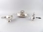 Lot en métal argenté pour l’hôtellerie comprenant :- 1 légumier anglais dit ENTREE DISH à décor de perles, la prise amovible. Dim. 15 x 31 cm. Légères rayures. Bel état.- 1 saucière casque (dim. 23.1 x 10.1 cm), 1 cafetière égoïste à manche latéral bois noirci (H. 15.8 cm). Travail étranger. Légères rayures. - 1 grand plateau de service SAINT-HILAIRE rectangulaire à 2 anses. Signé. Nouveau poinçon de fabricant d’après la réforme du poinçon carré de 1983, qualité II. Boîte orange cartonnée accidentée de la maison. Rayures visibles. Dim. 50 x 35 cm. L. aux anses : 60.2 cm.
