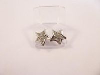 Paire de boucles d'oreilles en or gris 750 mil à décor d'étoiles serties de diamants ronds brillantés. (Système Alpa). 2,4 g.