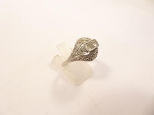 Bague en or 750 mil (pierre imitation), cordon de soie formant un bracelet retenant un motif ajouré en or 750 mil, paire de boucles d'oreilles "étoile" diamantée en or gris. 6,8 g. brut