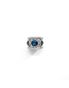 Bague bandeau en or gris 750°/oo ajouré, ornée dediamants ronds de taille brillant et saphirs, celui ducentre plus important serti clos.(Manque à certaines pierres)Tour de doigt : 53Poids brut : 18.9 g