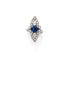 Bague en platine 850°/oo, le chaton ajouré deforme navette orné au centre d’une pierre bleueronde entre des diamants ronds de taille brillant.(Accident au chaton et usures)Tour de doigt : 49 1/2Poids brut : 9.6 g