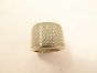 Bague moderniste en or gris 750 mil à pavage bandeau de diamants brillantés. Poids brut : 13.5 g. TDD 50. Chocs sur un diamant. Légères usures.