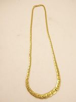 Collier en or 750 mil. à maillons haricot en chute. Fermoir mousqueton accidenté. Déformations. Poids : 7.1 g.