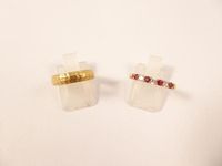 2 Bagues en or 750 mil. dont un anneau (TDD : 51) et une sertie de rubis chauffés et de pierres imitation (TDD : 54). 4,3 g.