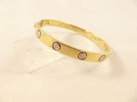Bracelet jonc rigide ouvrant en or 750mil serti de 11 diamants. Système de fermeture à vis. 35,2g