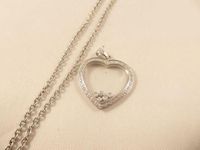 Collier en or gris 750mil et pendentif en or gris 750mil stylisant un coeur serti de diamants et retenant 5 diamants ronds brillantés mobiles. 13,4 g