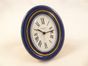 Pendulette-réveil CARTIER en métal doré et émail imitation lapis-lazuli. Cadran blanc à chiffres romains, mouvement quartz. (verre rayé, accidents à l'émail).