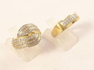 2 broches en or 750 mil, 1 ornée d'un camée coquille figurant une femme coiffée et 1 figurant une feuille guillochée et rehaussée d'un diamant TA, épingle en or gris 750 mil ornée d'un diamant. 23,7 g. brut
