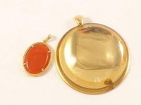 2 pendentifs dont 1 en or retenant une pierre décorative brune et 1 signée BACCARAT orné d'une demi-sphère en verre, bélière en or 750 mil. 83,3 g.