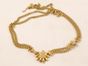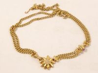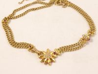 Collier en or 750 mil composé de 2 chaînes maillons gourmette, barettes et motif central soleil rehaussé de diamants. 30 g.