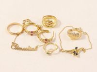 Lot en or 750 mil : 4 bagues, 2 bracelets, paire d