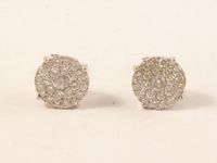 Paire de boucles d'oreilles en or gris 750 mil à large chaton rond pavé de diamants. 5,3 g.