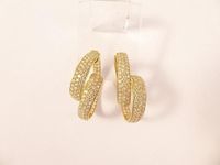 Paire de créoles en or 750 mil à décor d'enroulement pavées de diamants brillantés. (système défectueux et déformations). 11,8 g.
