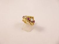 Bague moderniste en or 750 mil. ornée de rubis et diamants en serti clos (TDD : 52) 11,1 g.