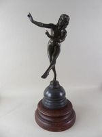 Claire Jeanne Roberte COLINET (1880-1950) "Danseuse" Bronze à patine brune, sur socle en marbre noir, signé, cachet "Fonderie Bords de Seine", porte le numéro A7254. Hauteur totale : 46 cm. (Légers manques à la main gauche, manque les anneaux, petites griffures à la jambe gauche)