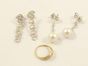 Bague en or 750 mil (diamants 8/8) (TDD : 55), 2 paires de pendants d'oreilles en or gris 750 mil dont 1 figurant une suite de "8" diamantés et 1 rehaussés de diamants et retenant une perle de culture. 17,4 g. brut