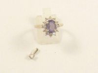 Bague fleur en or gris 750 mil centrée d'une améthyste entourée de diamants (Tdd : 50), pendentif en or gris 750 mil orné d'un diamant. 3,7 g.