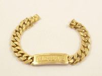 Bracelet d'identité chiffré en or 750 mil à maillons gourmette. 112,4 g.