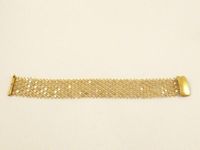 Bracelet manchette en or 750 mil. tressé et pastillé (déformations) (longueur : 19,5 cm). 24,7 g.