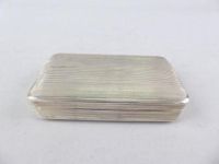 Boîte en argent à décor mouluré de filets et couvercle à charnière, travail hollandais du début du 19e siècle, vers 1814. Poinçons : hollandais du bureau de garantie, lettre date e pour 1814, la marque à l’épée de 1814-1865 (934 mil-833 mil.) et le maître orfèvre AK. Cygnes français.Poids : 118.7 g. Nombreuses restaurations visibles. Bon de conservation générale. Dim. 2.7 x 10.9 x 6.2 cm.