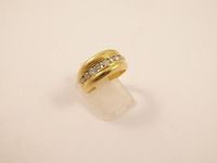 Bague en or 750 mil sertie d'une ligne de diamants brillantés (TDD : 50,5). 6,8 g.
