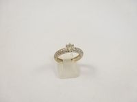 Bague en or rhodié 750 mil sertie d'un diamant brillanté de 0,30 carat environ épaulé de pavage de diamants. (TDD : 53). 5,9 g.