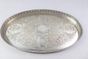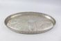 VINERS OF SHEFFIELD, ANGLETERRE, XXe siècle : plateau ovale de service en métal argenté, le fond ciselé de rinceaux feuillagés, coquille et croisillons, la galerie ajourée à guirlande de fruits et godrons tors. Signé. Légères rayures et légères déformations sur un bord de galerie. Bel état général. L. 46 cm. H. 3 cm.
