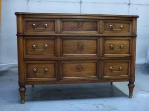 Garniture de cheminée en bronze doré comprenant une pendule borne, cadran rond à chiffres romains, surmonté d'une cassolette et une paire de candélabre à trois feux (avec clef et balancier). Hauteur : 41 cm et 42 cm. (Déformations)